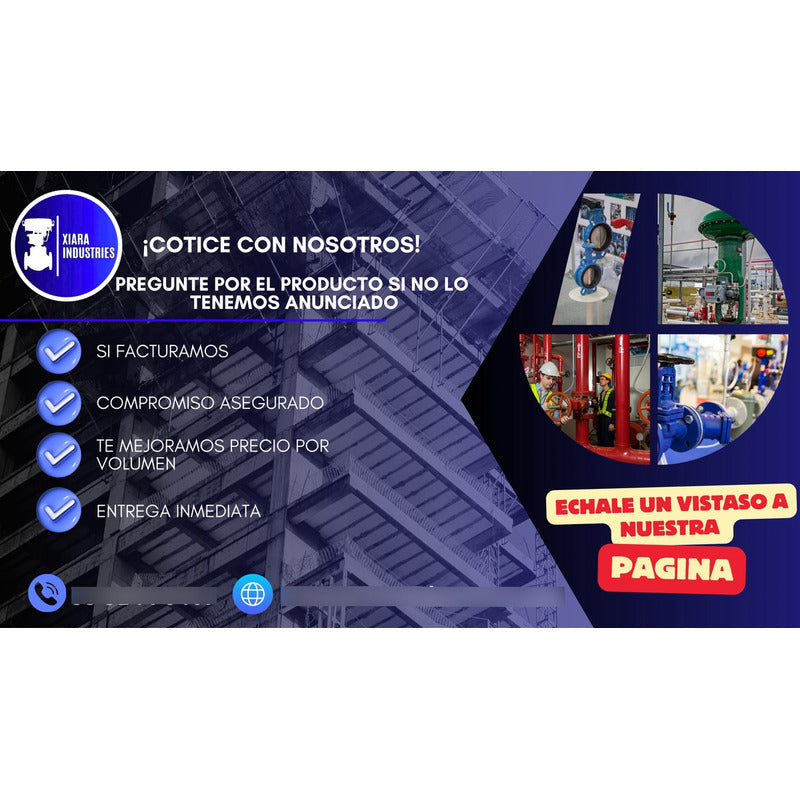 Gracias por su interés en XIARA INDUSTRIES En XIARA INDUSTRIES nos especializamos en ofrecer soluciones integrales para los sectores industrial, hidráulico y de protección contra incendios. Nuestro compromiso es brindar productos de calidad y un servicio confiable que responda a las necesidades de cada cliente. Nuestras principales líneas de producto: • Protección contra incendios: Mangueras, válvulas, conexiones, gabinetes, hidrantes y componentes especializados. • Sistemas de agua potable: Tuberías, conexiones, válvulas y accesorios para instalaciones hidráulicas de alta demanda. • Sistemas de vapor: Válvulas, trampas de vapor, válvulas de control, tubería y equipo técnico para aplicaciones térmicas. • Automatización y control: Válvulas motorizadas, actuadores, presostatos, válvulas de control y soluciones para automatización de procesos. ¿Tuvo algún inconveniente con su compra? Le invitamos a contactarnos directamente antes de iniciar cualquier proceso de reclamación. Nuestro equipo está disponible para brindarle asistencia y resolver cualquier situación de forma rápida y eficiente. Horario de atención: • Lunes a viernes de 9:00 a.m. a 6:00 p.m. • Sábados de 9:00 a.m. a 2:30 p.m. Ventajas de comprar con XIARA INDUSTRIES: • Emisión de factura CFDI • Precios incluyen IVA • Envíos seguros y rápidos • Tarifas preferenciales por volumen • Cotizaciones personalizadas según sus requerimientos • Paquetes especiales para proyectos o compras recurrentes ¿No encuentra el producto que necesita? No dude en consultarnos. Contamos con una amplia red de proveedores y soluciones a la medida. Estamos para servirle.